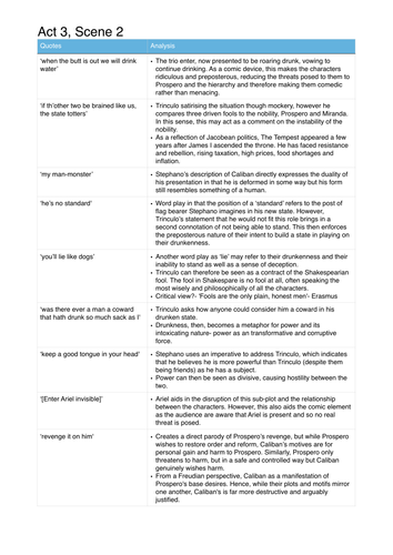 The Tempest Act 3 Scene 2 Analysis Teaching Resources
