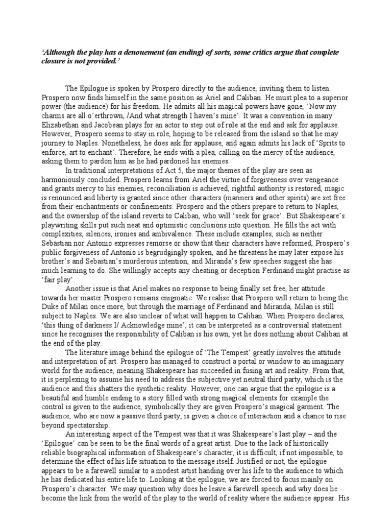 The Tempest Epilogue Criticisms Pdf The Tempest